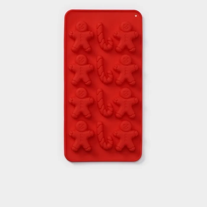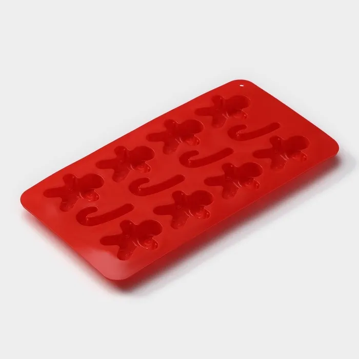 Форма для конфет и шоколада новогодняя Доляна «Карамельное чудо», силикон, 21×10 см, 12 ячеек (3.5×3.5 см), красная — Характеристики