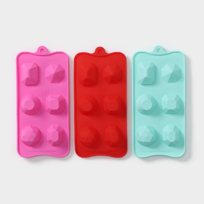 Форма для льда Доляна «Драгоценные камни», силикон, 22.5×10.6 см, 6 ячеек (d=4 см), цвет МИКС — Характеристики
