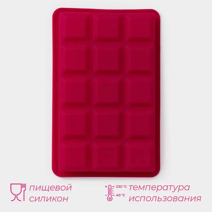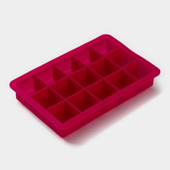 Форма для льда Доляна «Кубик», силикон, 18.5×11.8×3 см, 15 ячеек (3.4×3.4 см), малиновая — Характеристики