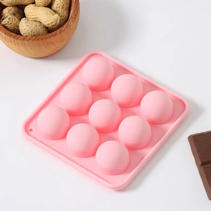 Форма для льда Доляна «Шары», 10.5×10.5×2 см, 9 ячеек (d=1.9 см), розовая — Характеристики