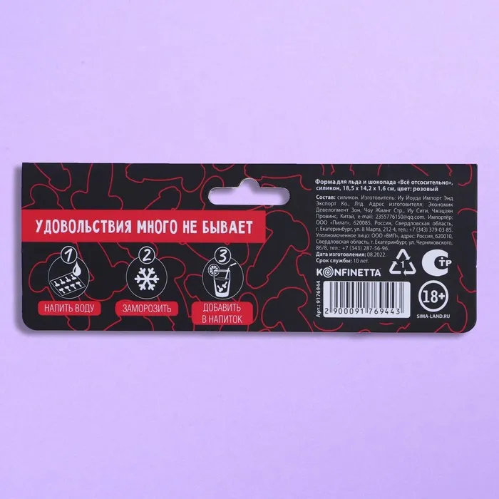 Форма для льда и шоколада «Всё отсосительно», силикон, 18.5×14.2×1.6 см, розовая, 18+ — Характеристики