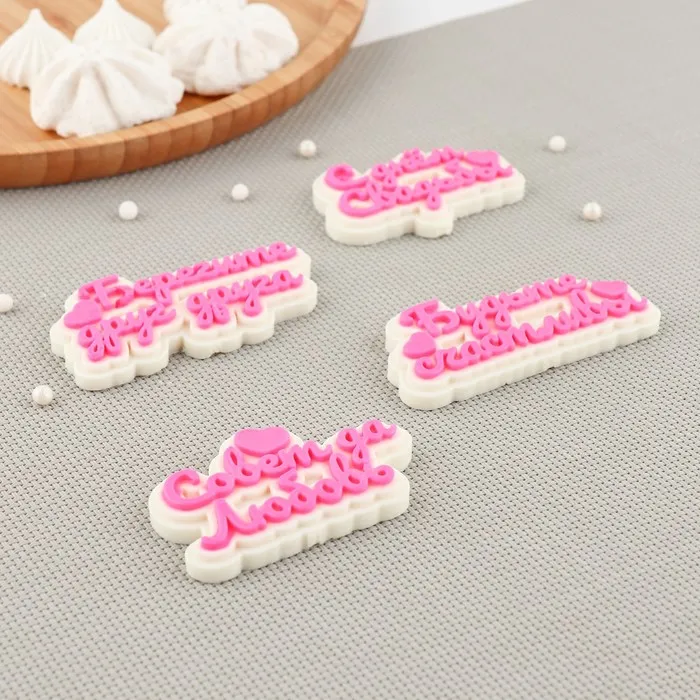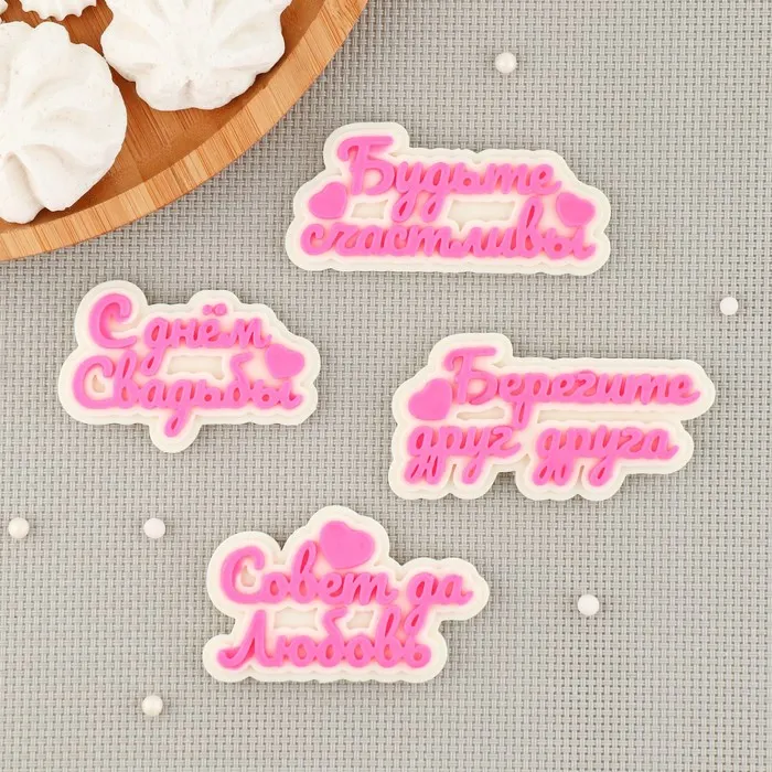 - Торжественный дизайн: Молд включает в себя формы с надписями, создавая милые и значимые элементы декора для ваших свадебных сладостей. Ваши леденцы будут нести в себе особый смысл.
