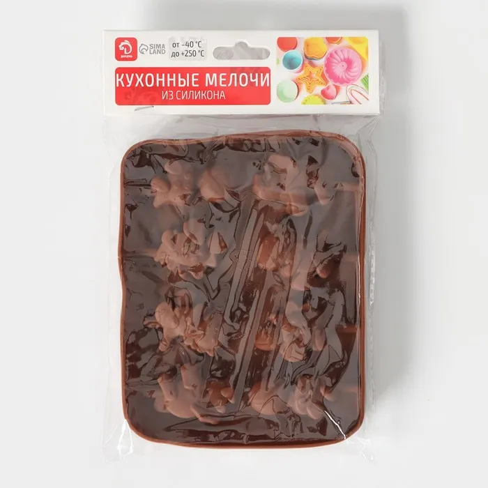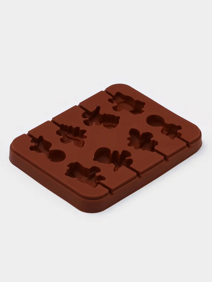 Форма для леденцов Доляна «Дино», силикон, 14×11×1.5 см, 8 ячеек, с палочками, коричневая — Характеристики