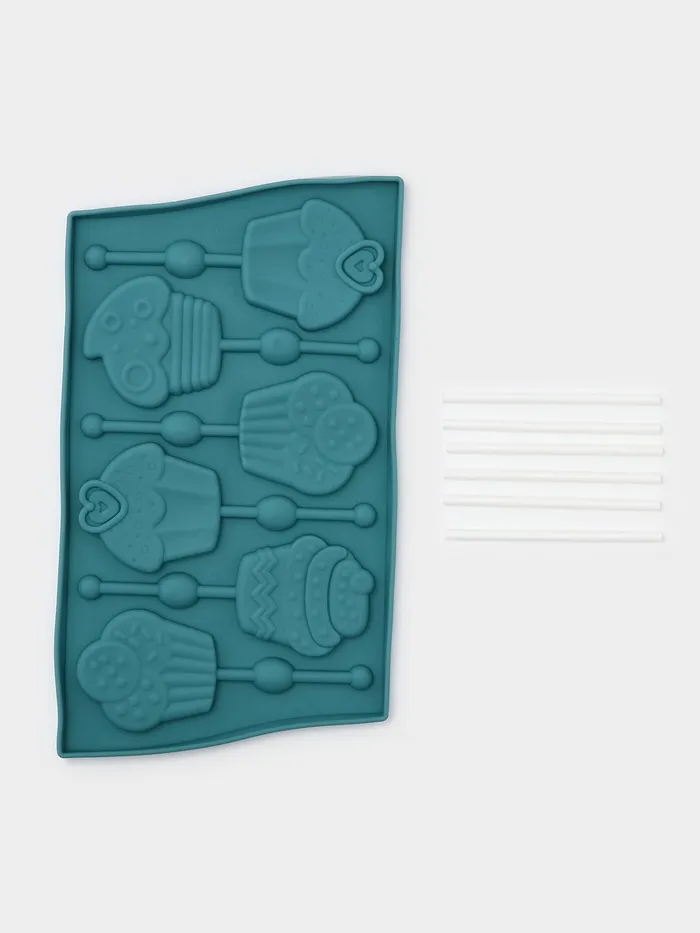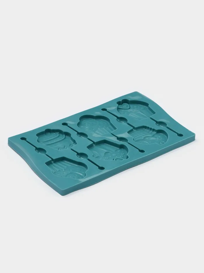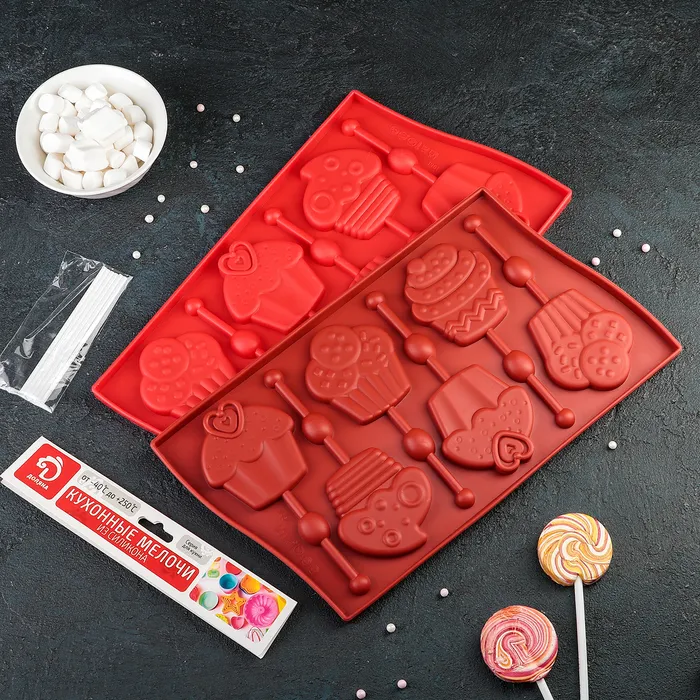 Форма для леденцов Доляна «Капкейк», силикон, 27.5×16.5 см, 6 ячеек (6×7 см), с палочками, МИКС — Характеристики