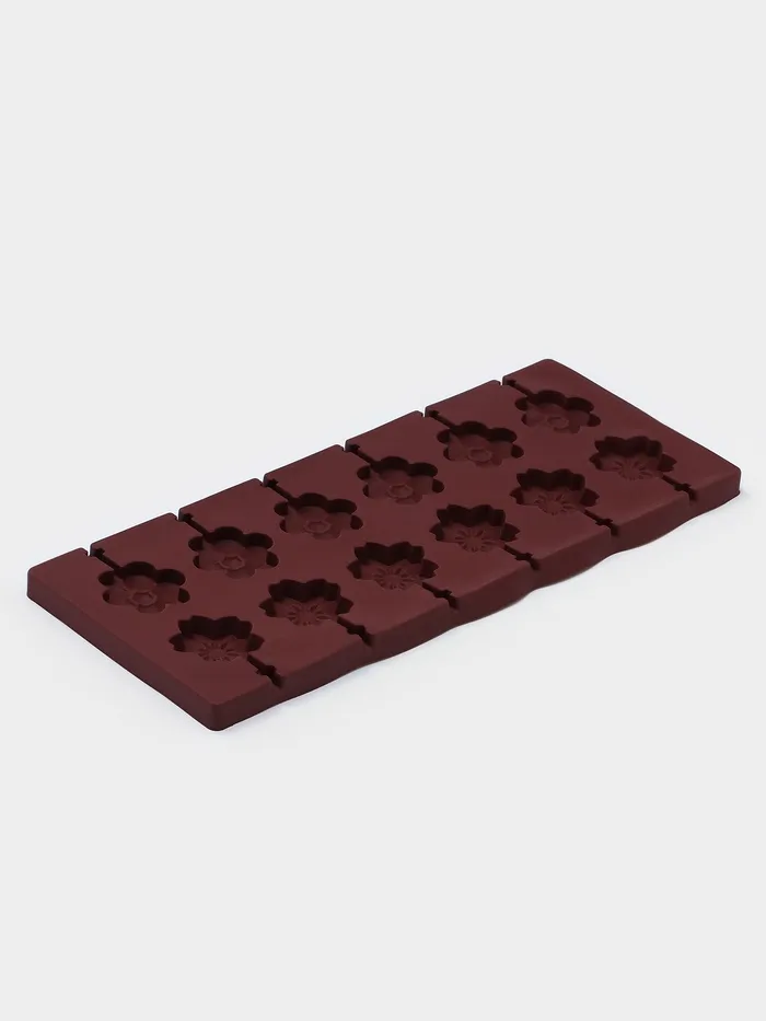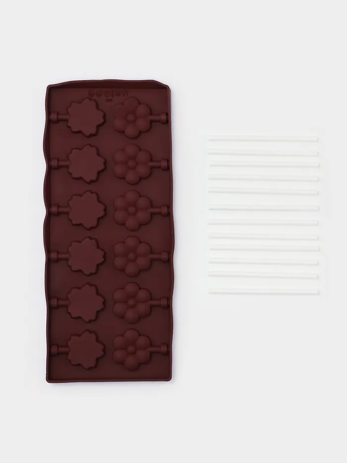 Форма для леденцов Доляна «Клумба», силикон, 25×10.5×1 см, 12 ячеек (3.2×3 см), с палочками, коричневая — Характеристики