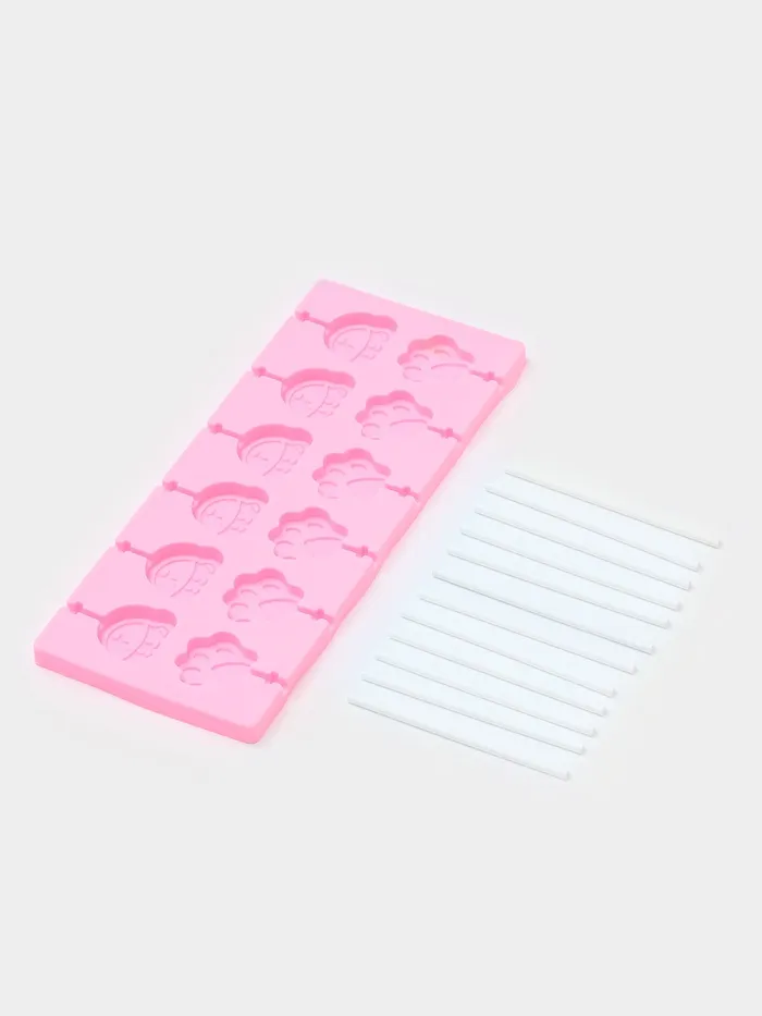 Форма для леденцов Доляна «Мишка», силикон, 25×10.5×1 см, 12 ячеек (3×3.3 см), с палочками, МИКС — Характеристики