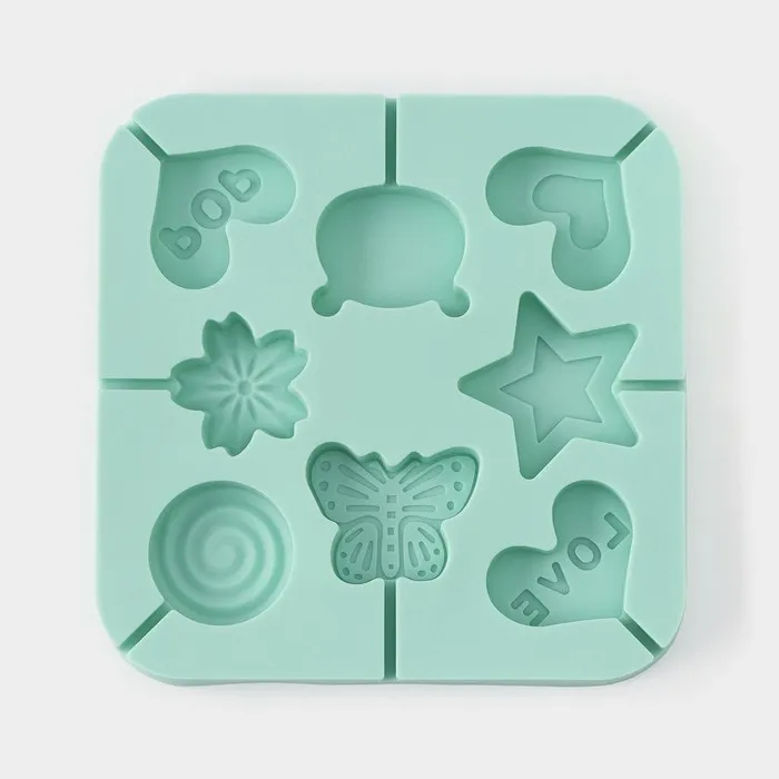 Форма для леденцов Доляна «Сладость», силикон, 15×15×1.5 см, 8 ячеек, с палочками, бирюзовая — Характеристики