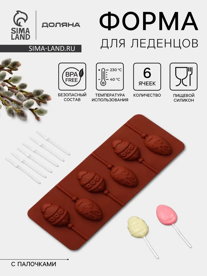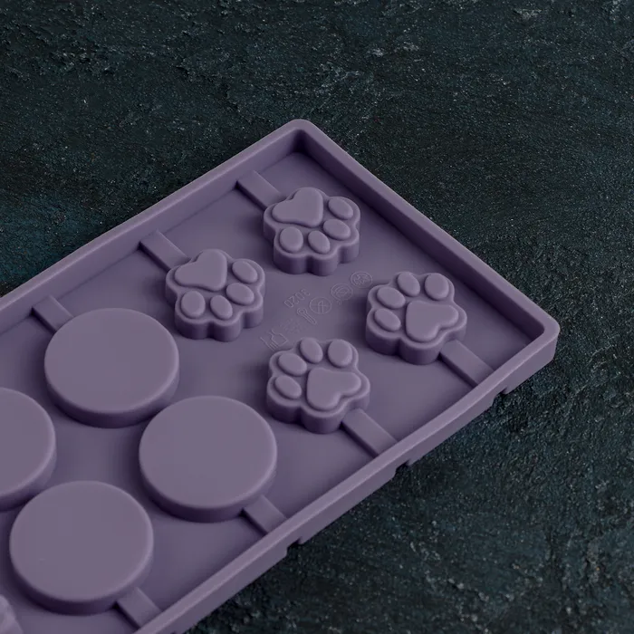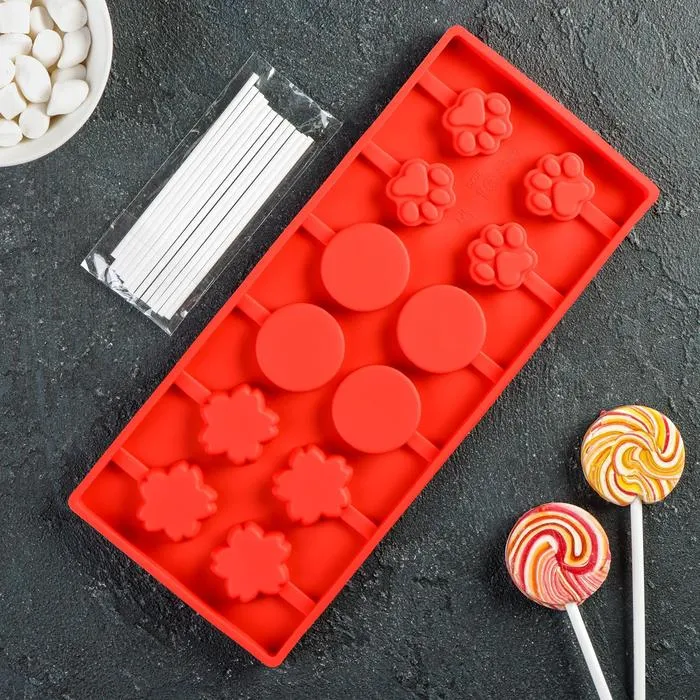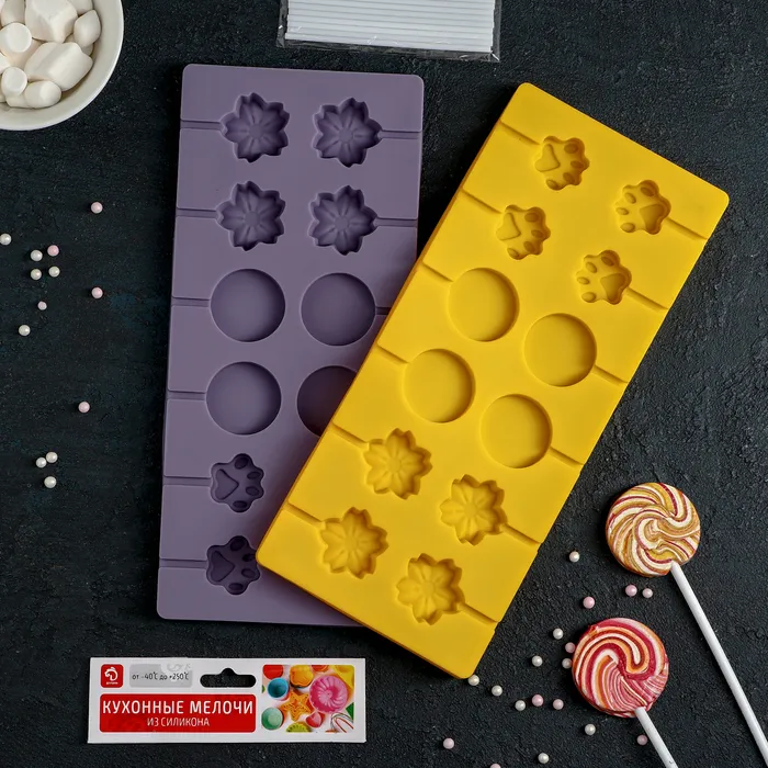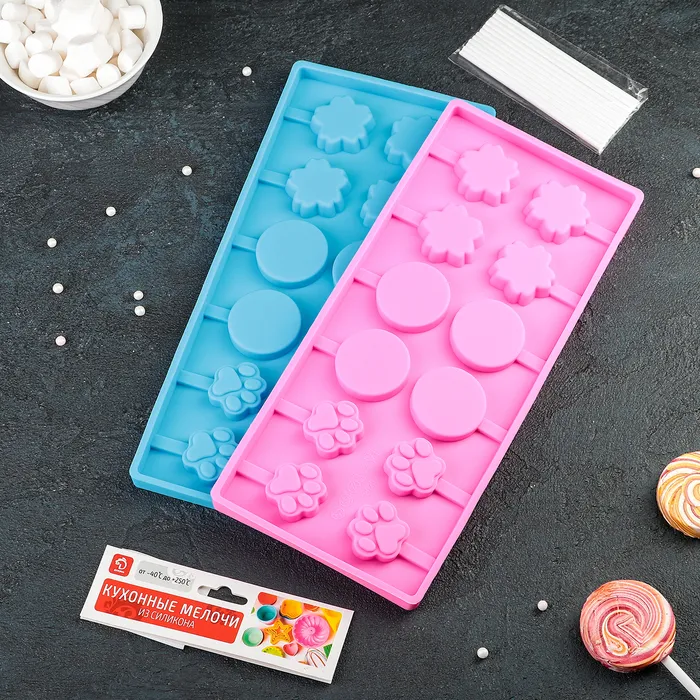 Форма для леденцов Доляна «Вкусная сладость», силикон, 26.5×11.5 см, 12 ячеек (d=3.5 см), с палочками, МИКС — Характеристики