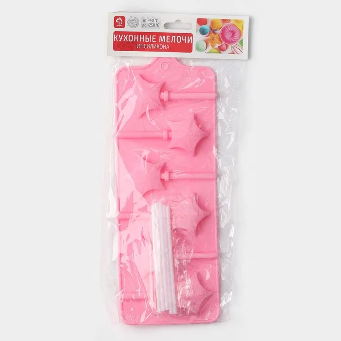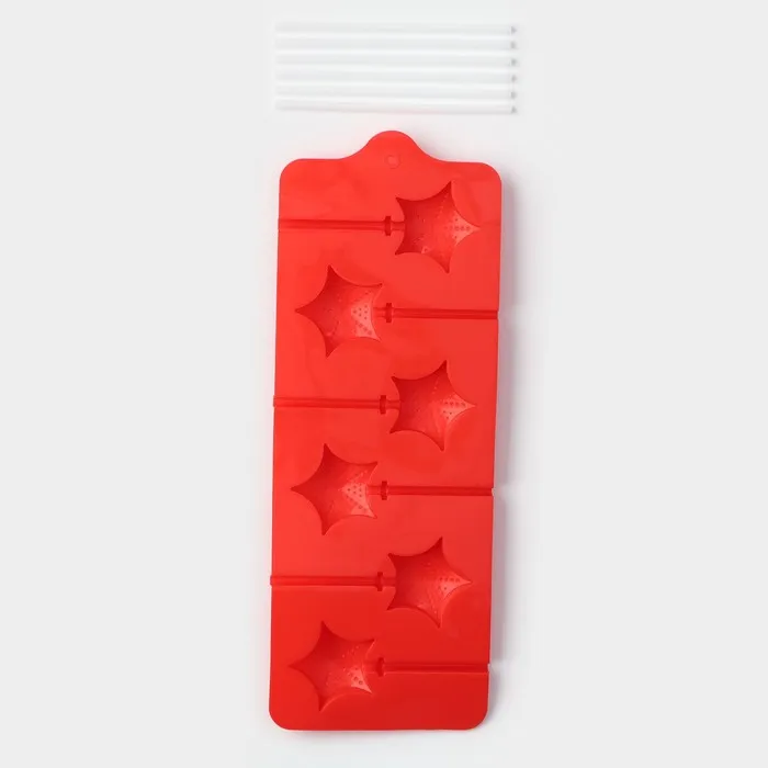 Форма для леденцов Доляна «Звездочёт», силикон, 9.5×24×1 см, 6 ячеек (4.2×3.8 см), с палочками, МИКС — Характеристики