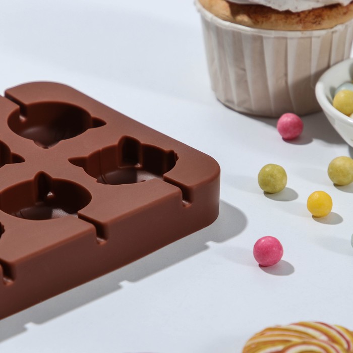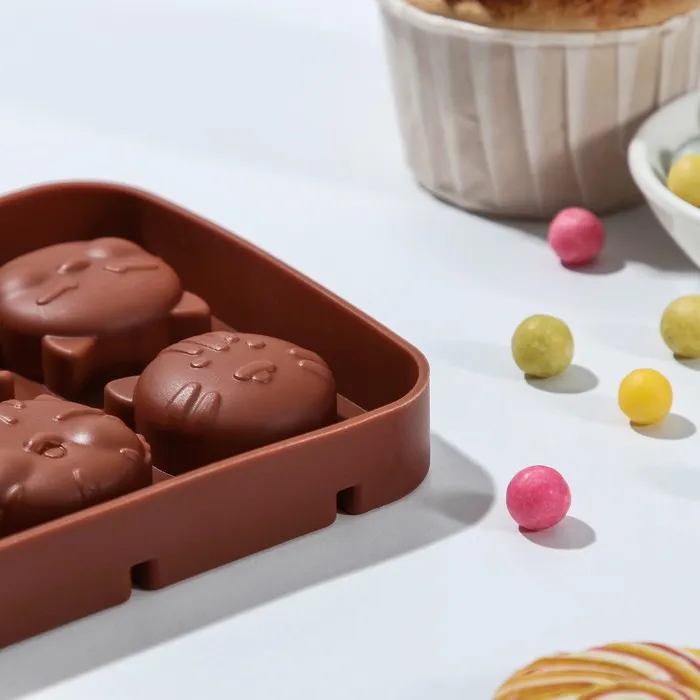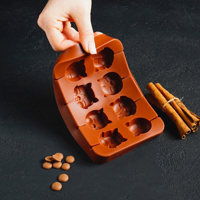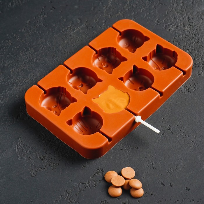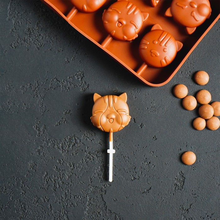 - 8 ячеек с рельефным рисунком котиков — каждый леденец получается с узнаваемым силуэтом.