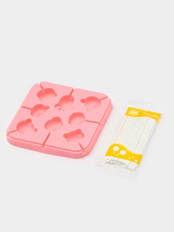Форма для леденцов «Зверята», силикон, 14×14×1.4 см, 8 ячеек, с палочками, МИКС — Характеристики