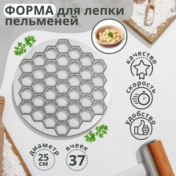 Форма для лепки пельменей Доляна, d=25 см, 37 ячеек — Характеристики