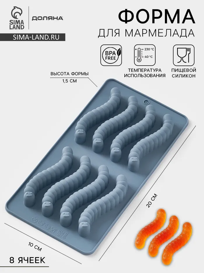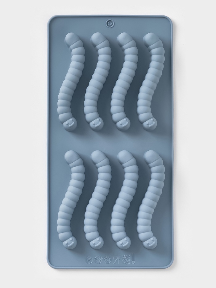 Форма для мармелада Доляна «Червячки», 20×10×1.5 см, силикон, голубая — Характеристики