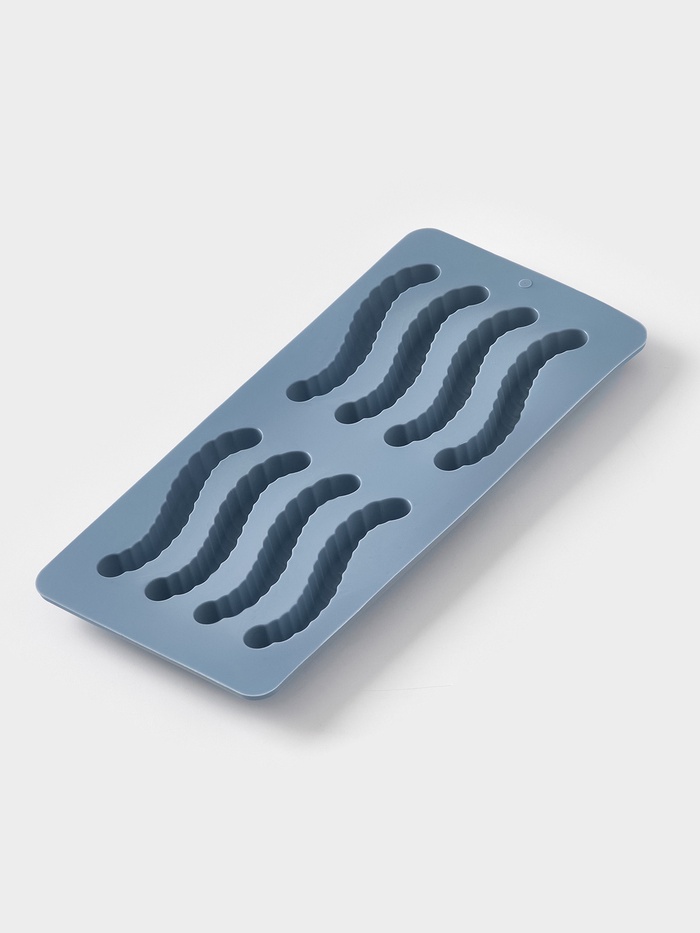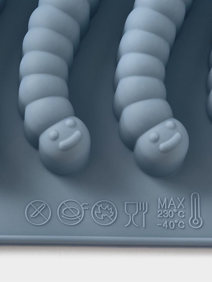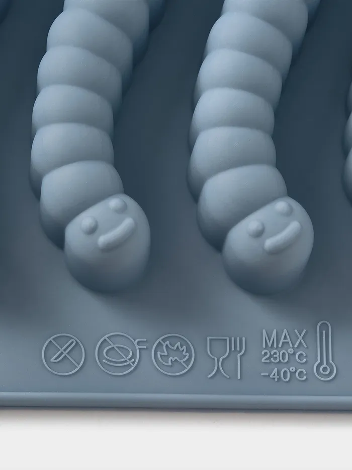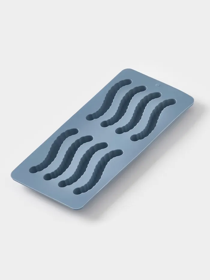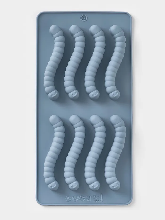 Силиконовая форма для мармеладных червячков — голубая, компактная, с 8 ячейками — делает сладкое производство похожим на игру. Подходит для домашнего мармелада, желе, застывших соков или даже шоколадных заливок. Гнётся без усилия, выталкивает фигурки без разрывов — как будто они сами просятся на тарелку.