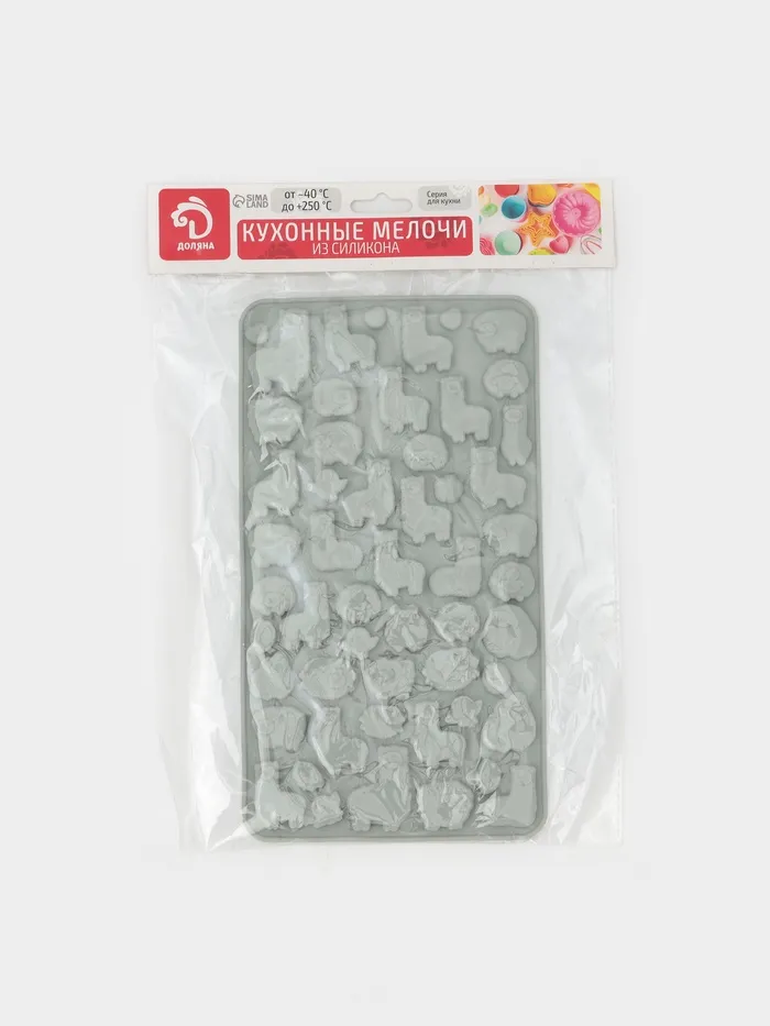 Форма для мармелада Доляна «Ферма», силикон, 23×12.5×1 см, 53 ячейки, серая — Характеристики