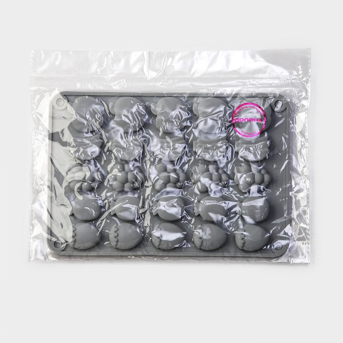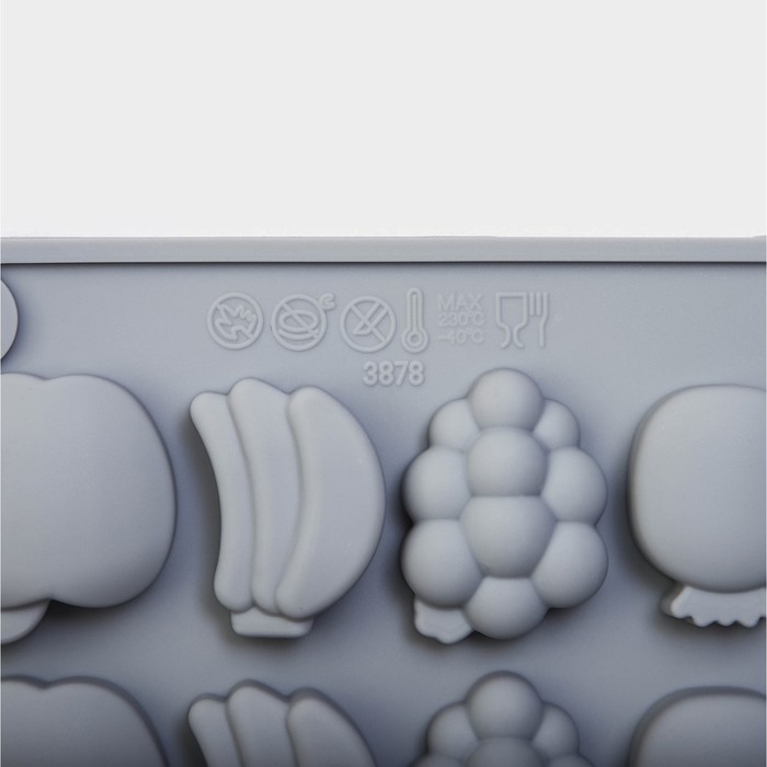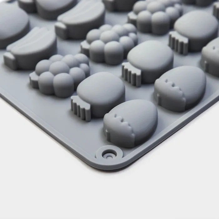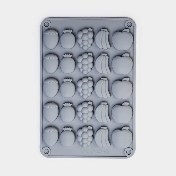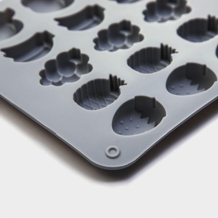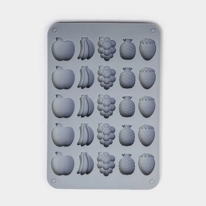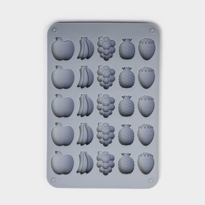 Форма для мармелада Доляна «Фрукты», силикон, 21,3×14,4×1,5 см, 25 ячеек (3×2 см), цвет серый — Характеристики