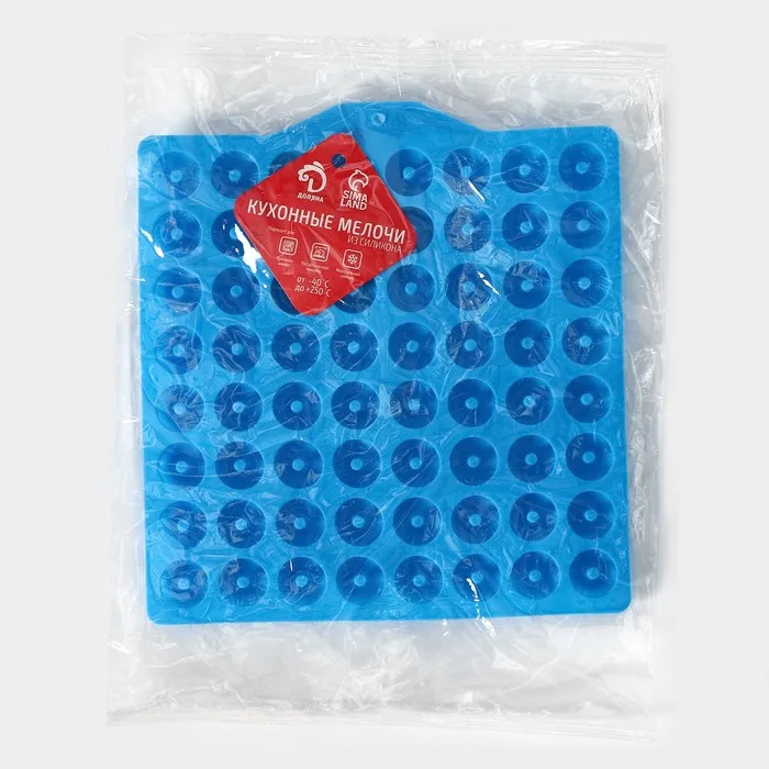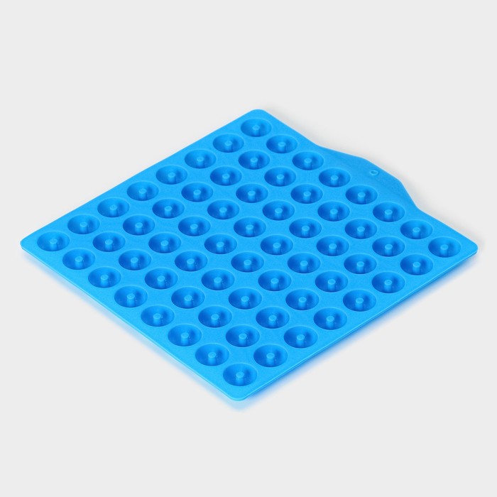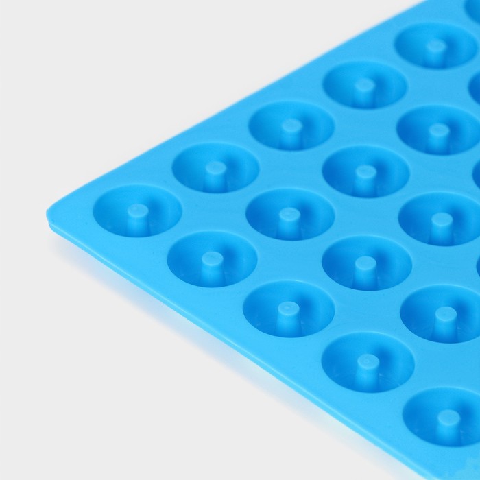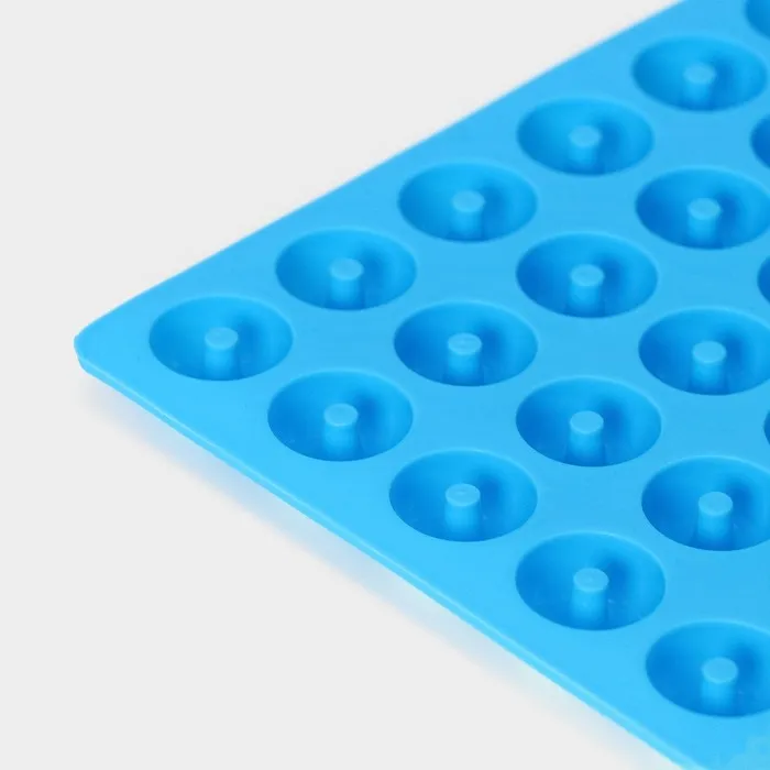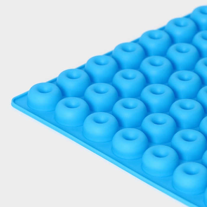 Форма для мармелада Доляна «Пончики», силикон, 21.5×20 см, 64 ячейки (d=2 см), голубая — Характеристики