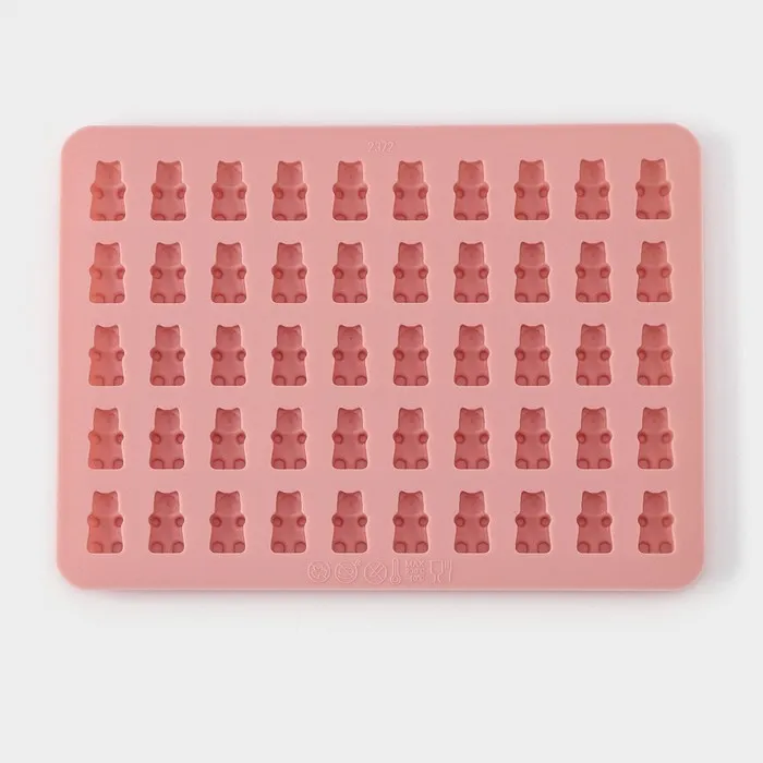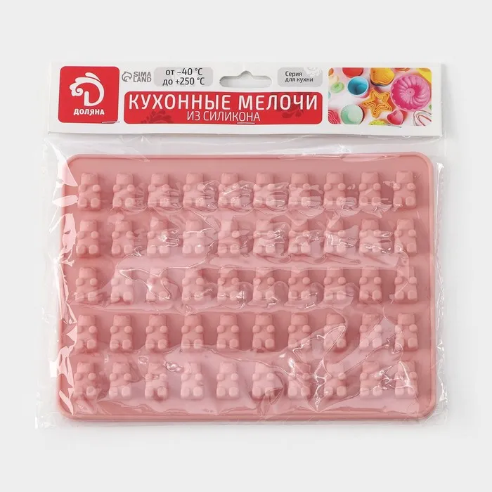 Форма для мармелада Доляна «Сладкие мишки», силикон, 18.8×13.8 см, 50 ячеек (1.8×1.1 см), МИКС — Характеристики