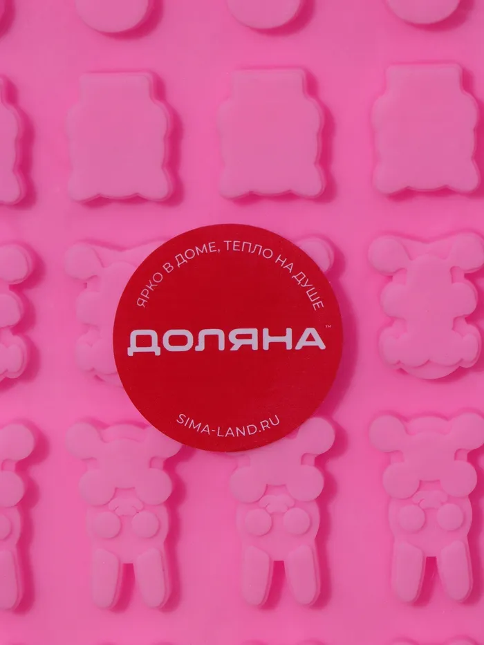 Форма для мармелада Доляна «Зоопарк», силикон, 18.5×15×0.5 см, 49 ячеек (2×1.5 см), розовая — Характеристики