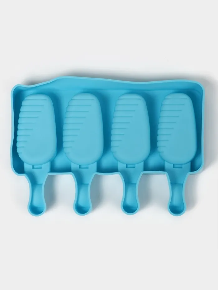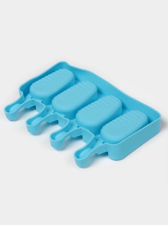 Форма для мороженого Доляна «Эскимо в глазури», силикон, 18.5×12.3×2.5 см, 4 ячейки, синяя — Характеристики