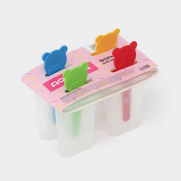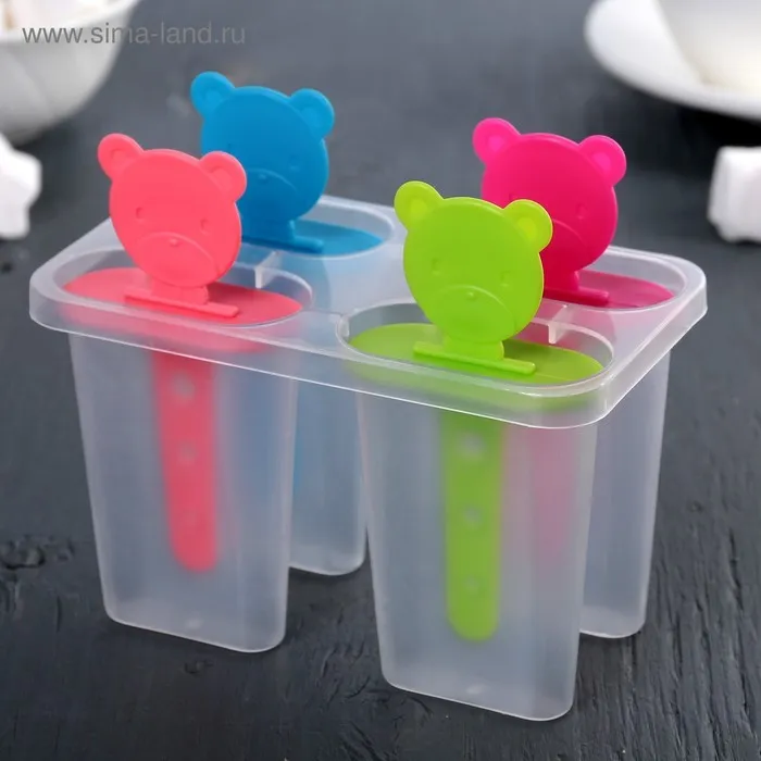 Форма для мороженого Доляна «Медвежонок», 13×11.5×7.5 см, 4 ячейки, прозрачная — Характеристики