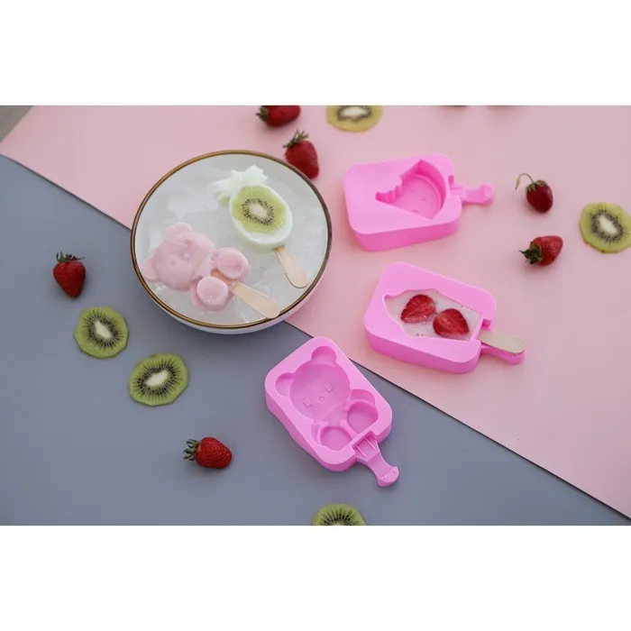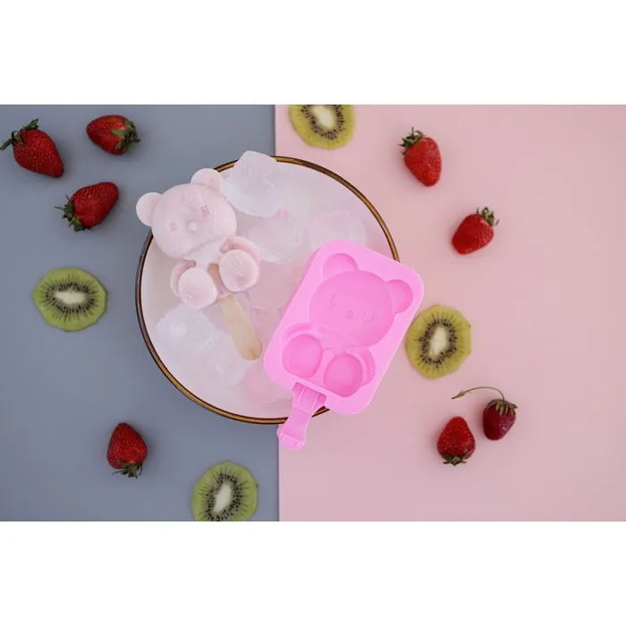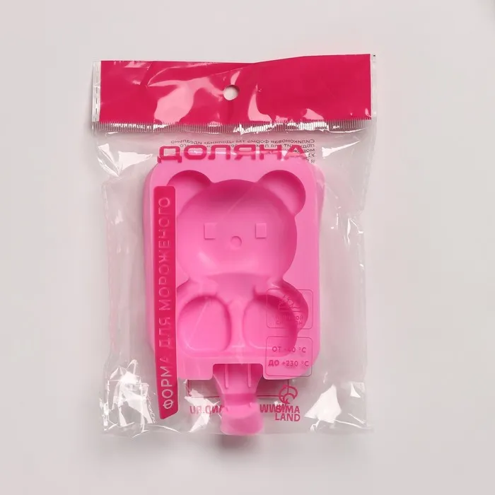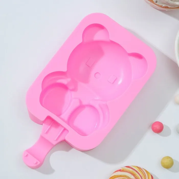 Форма для мороженого Доляна «Мишутка», силикон, 14×8×2,5 см, цвет розовый — Характеристики