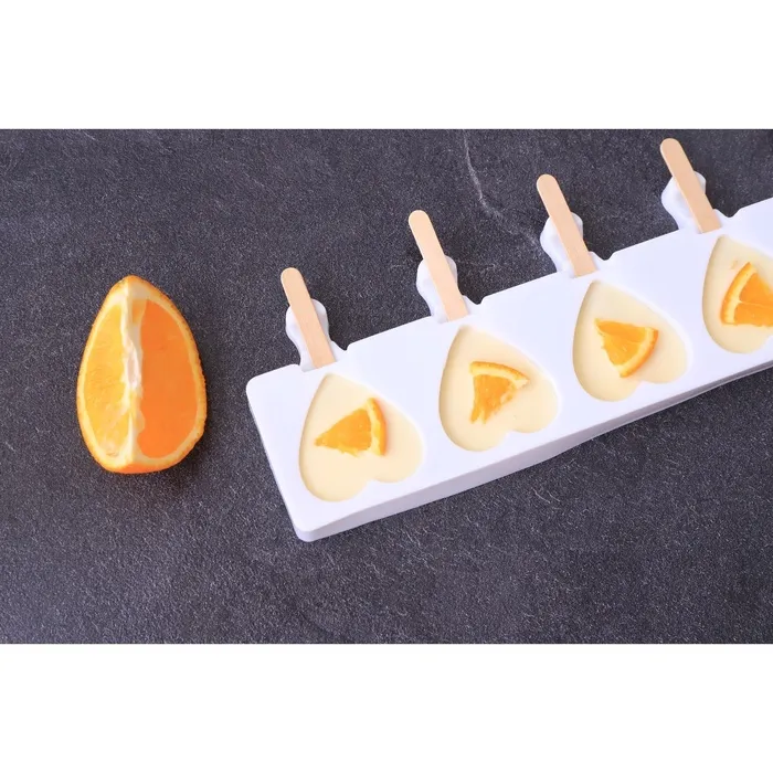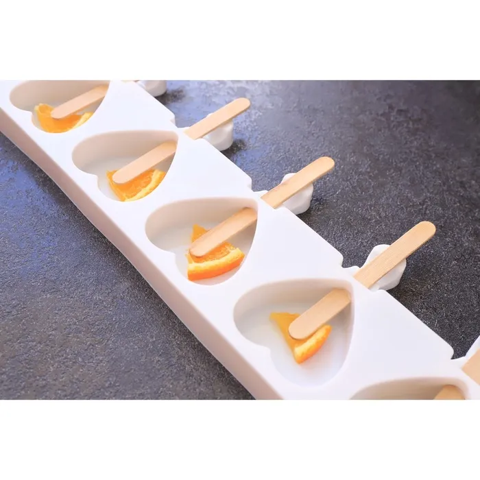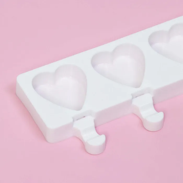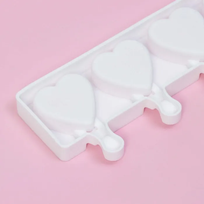 Форма для мороженого Доляна «Сердца. Макси», силикон, 49×6.5×2 см, 8 ячеек, палочки 50 шт., белая — Характеристики