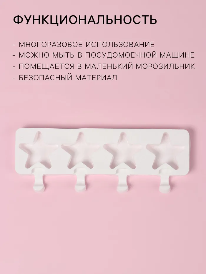 Форма для мороженого Доляна «Звезда», силикон, 28.5×10.5×2 см, 4 ячейки, белая — Характеристики