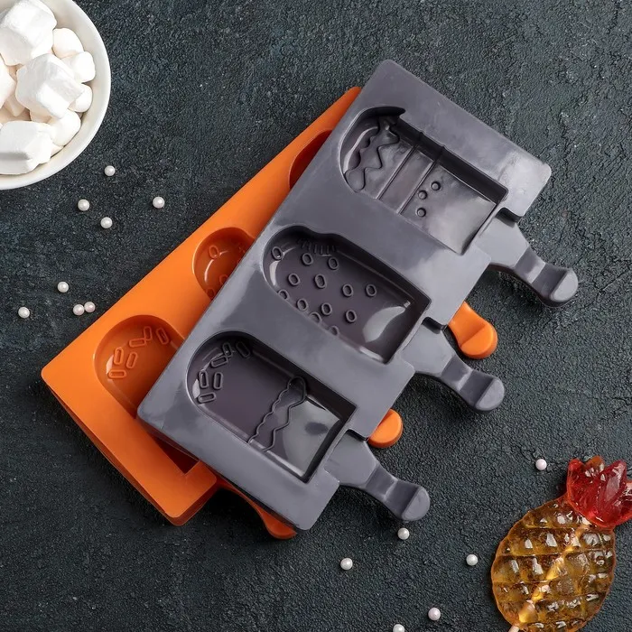 Форма для мороженого «Эскимо со сладостями», силикон, 19.5×17.7 см, 3 ячейки (7×4.2 см), МИКС — Характеристики