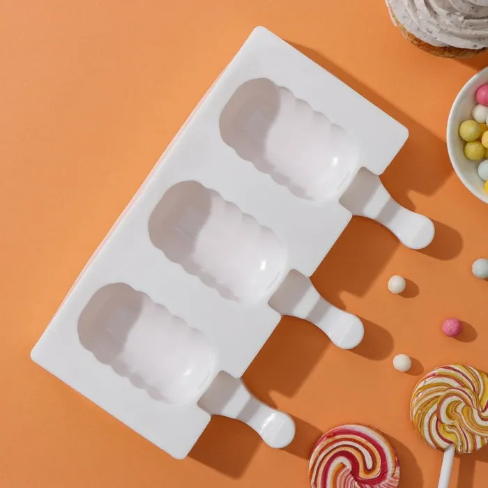 Форма для мороженого «Эскимо волна», силикон, 19.4×13 см, 3 ячейки (7×4 см), МИКС — Характеристики