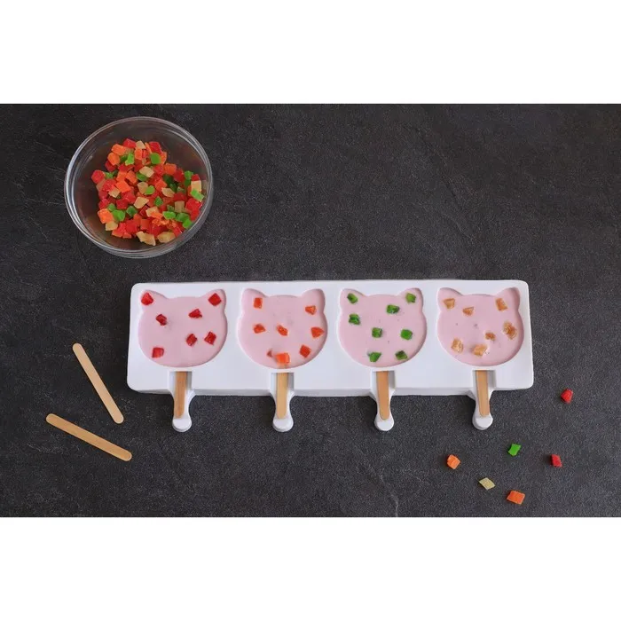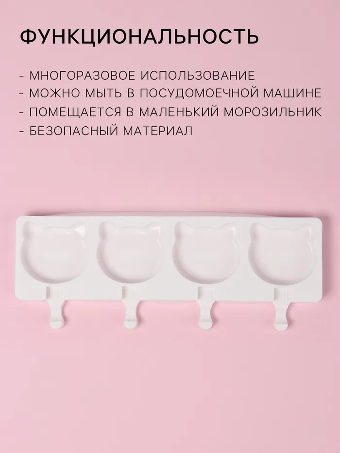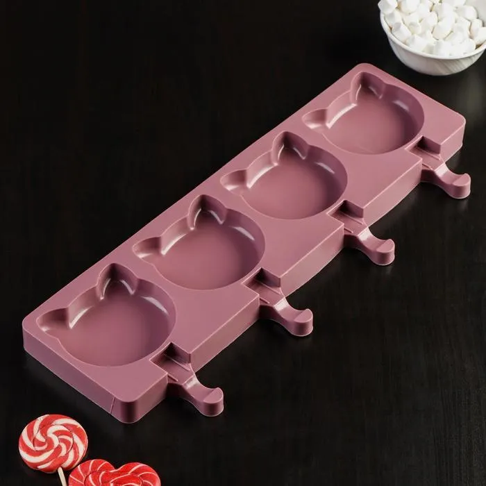 Форма для мороженого «Коты», силикон, 38×14.5×2.5 см, 4 ячейки, МИКС — Характеристики
