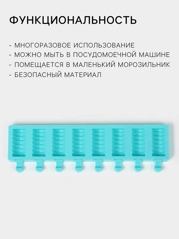 Форма для мороженого «Моника», силикон, 38×11×2 см, 8 ячеек (6.6×3.4 см), МИКС — Характеристики