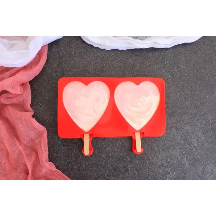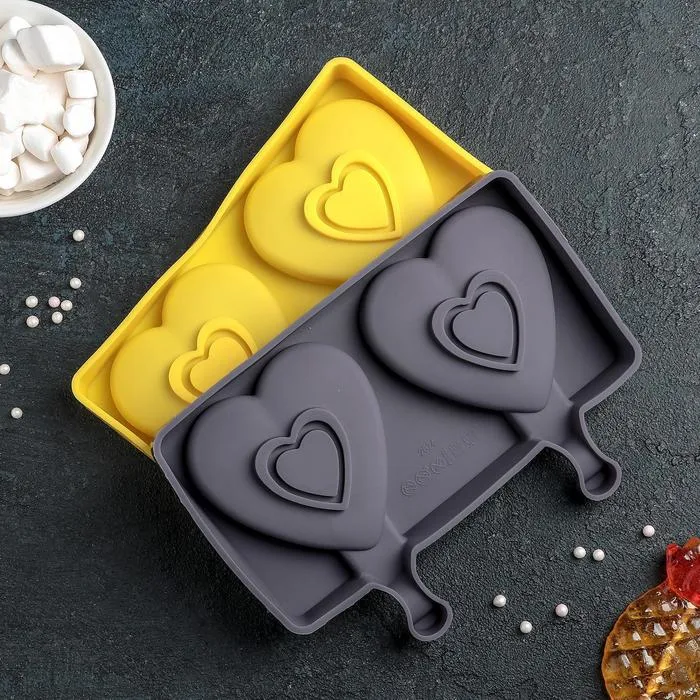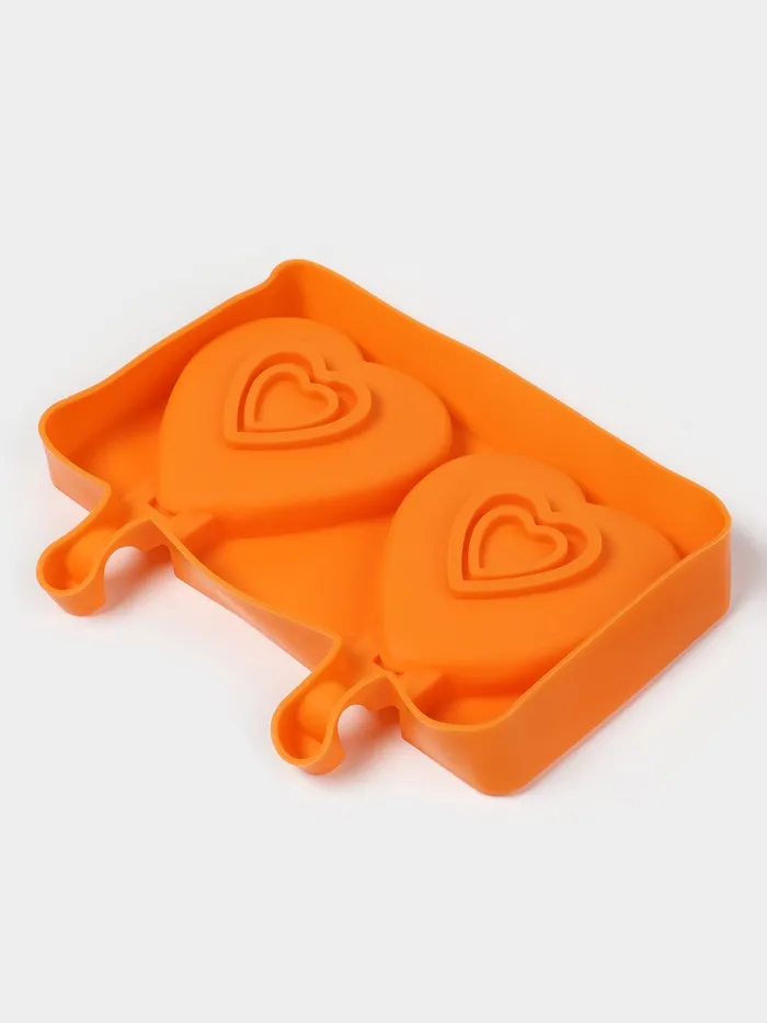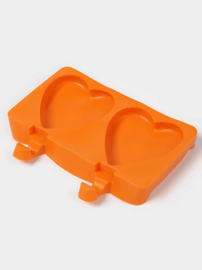 Форма для мороженого «Сердечко», силикон, 19.5×14×2.5 см, 2 ячейки (8.4×9 см), МИКС — Характеристики