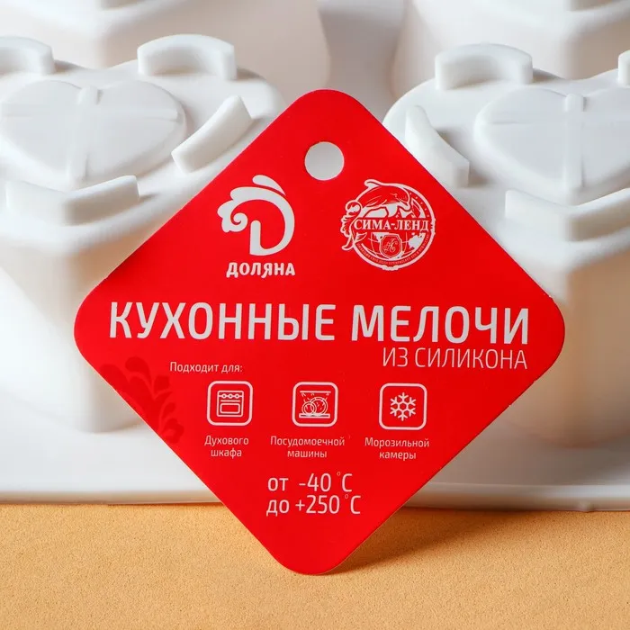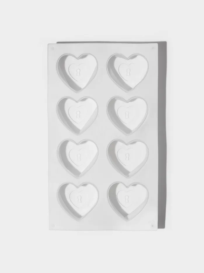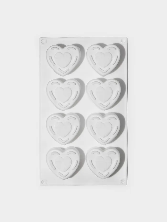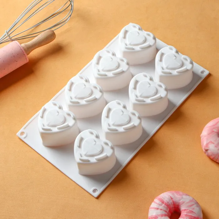 Форма для муссовых десертов Доляна «Сердце», силикон, 29×17×4.3 см, 8 ячеек (5.5×6.2×3.5 см), белая — Характеристики