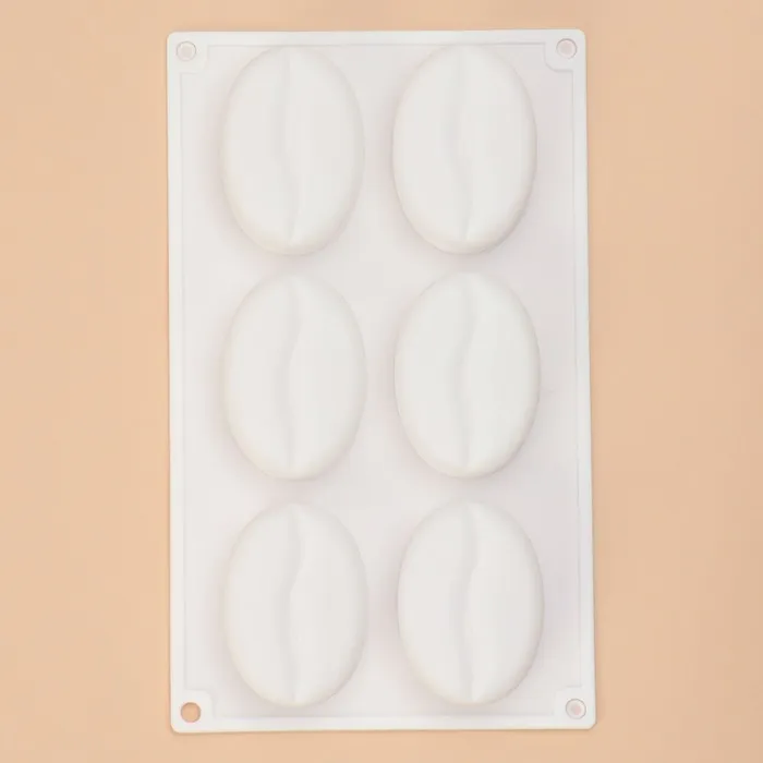 Форма для муссовых десертов и выпечки Доляна «Кофейные зёрна», силикон, 28,5×17×2,5 см, 6 ячеек (8×6 см), цвет белый — Характеристики