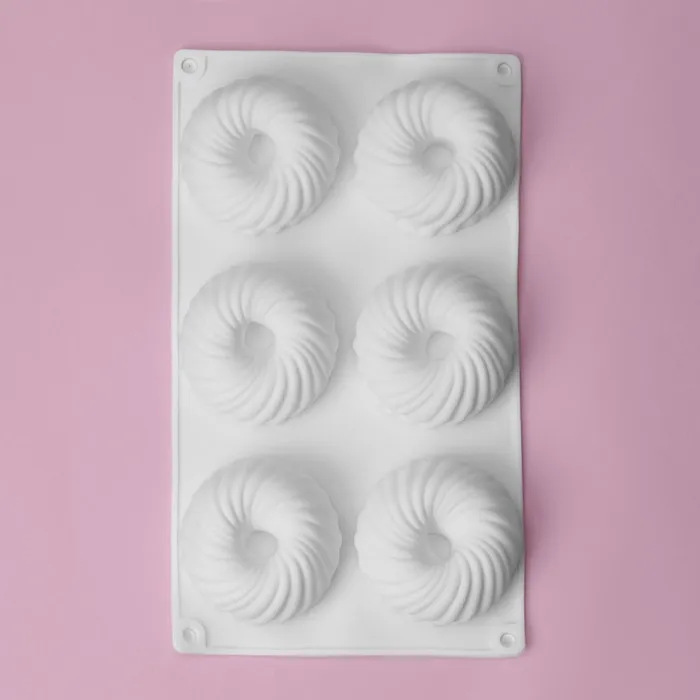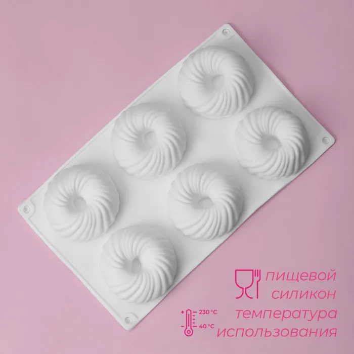 Форма для муссовых десертов и выпечки Доляна «Вихрь», 29.8×17.5×3 см, 6 ячеек (d=7.7 см), силикон, белая — Характеристики