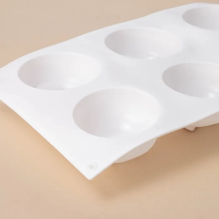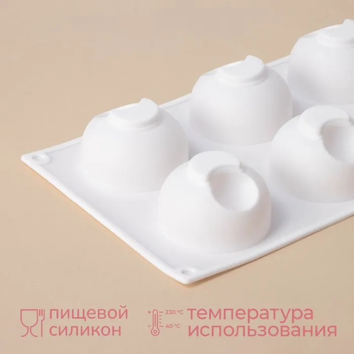 Форма для муссовых десертов и выпечки KONFINETTA «Десерт с фруктами», 30×17.5×4.5 см, 6 ячеек (d=7 см), силикон, белая — Характеристики