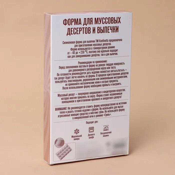 Изделие очень прочное и гибкое — готовый десерт легко извлекается из формы. Он будет выглядеть красиво и аккуратно, не пригорит и не прилипнет к стенкам, лакомства выпекаются быстро и легко.