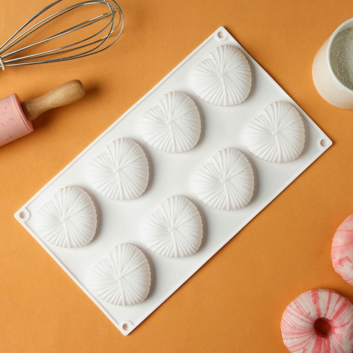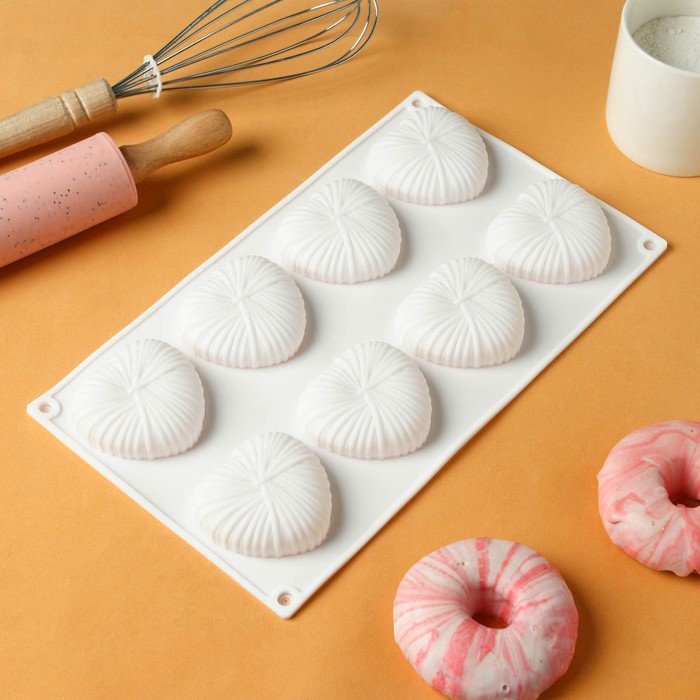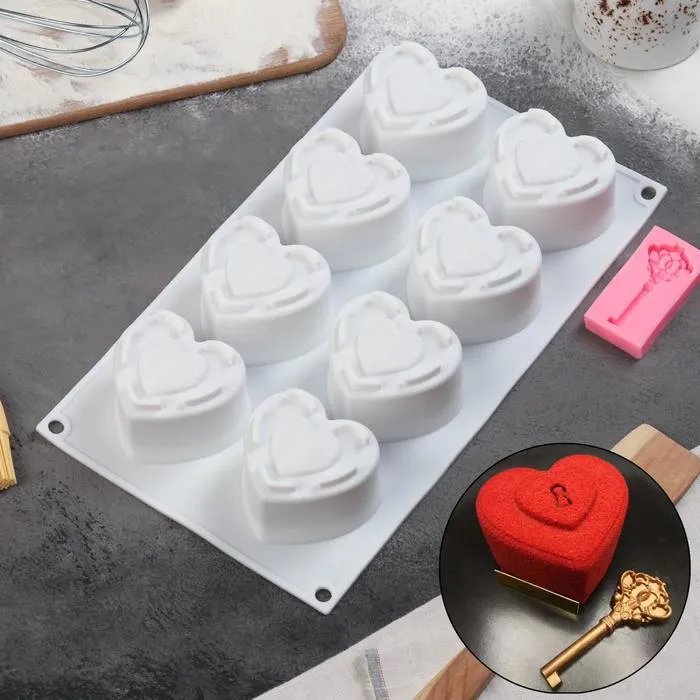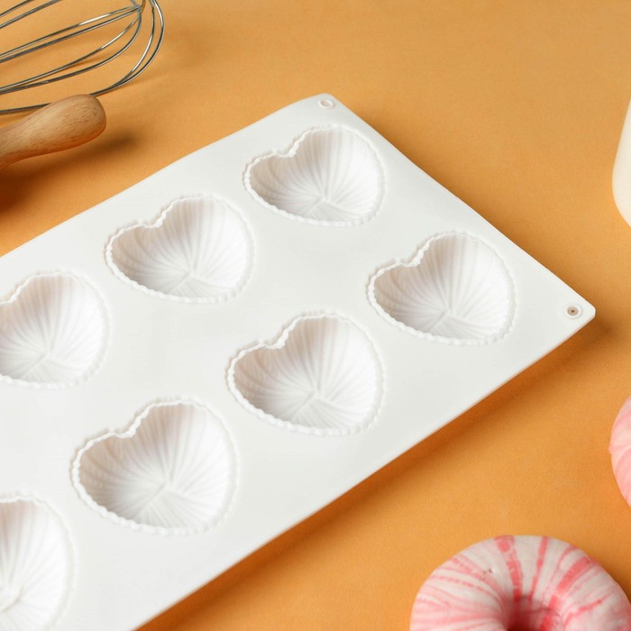 Форма для муссовых десертов и выпечки KONFINETTA «Вязаное сердце», силикон, 29,5×17×2 см, 8 ячеек (5,5×6,5×1,5 см), цвет белый — Характеристики