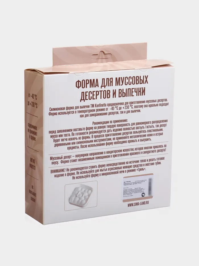 Изделие очень прочное и гибкое — готовый десерт легко извлекается из формы. Он будет выглядеть красиво и аккуратно, не пригорит и не прилипнет к стенкам, лакомства выпекаются быстро и легко.