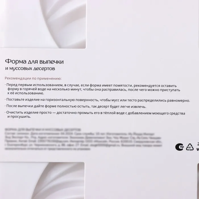 - Перед первым использованием необходимо вымыть форму под тёплой водой.