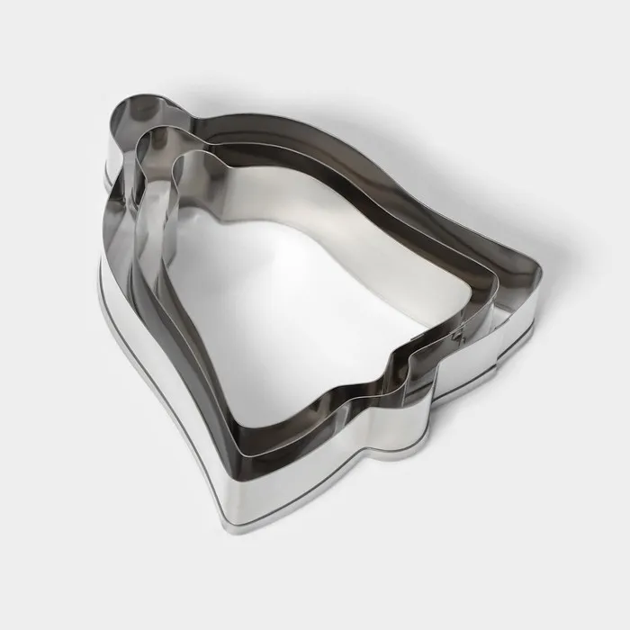 Форма для печенья Доляна «Колокольчик», набор 3 шт., 6×6 см, серебристая — Характеристики