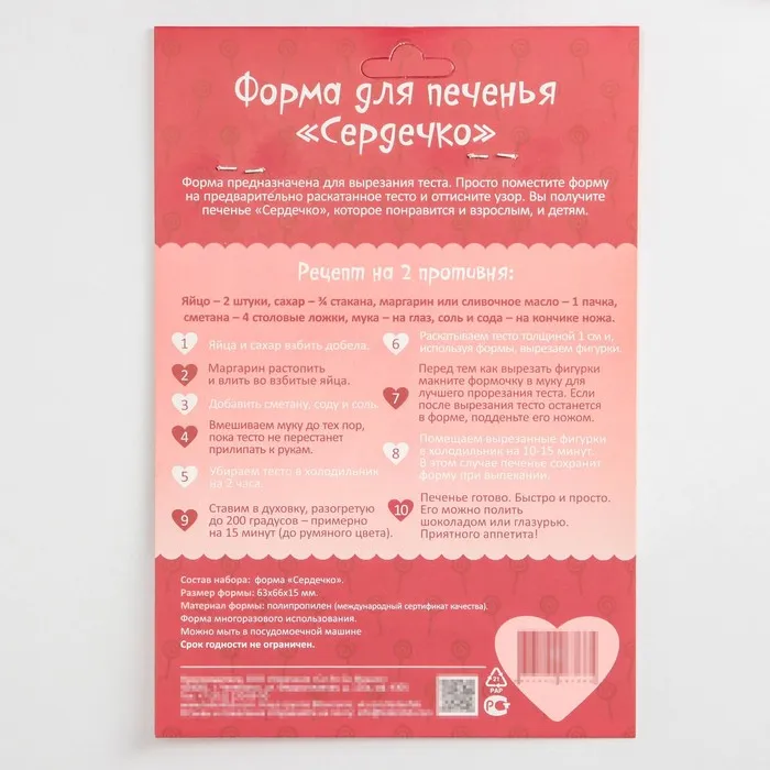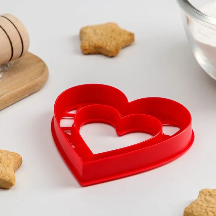 Форма для печенья «Сердце», вырубка, штамп, 6,3×6,6×1,5 см, цвет красный — Характеристики