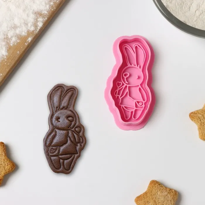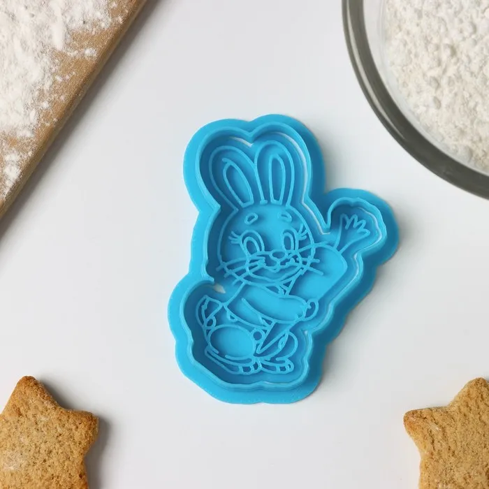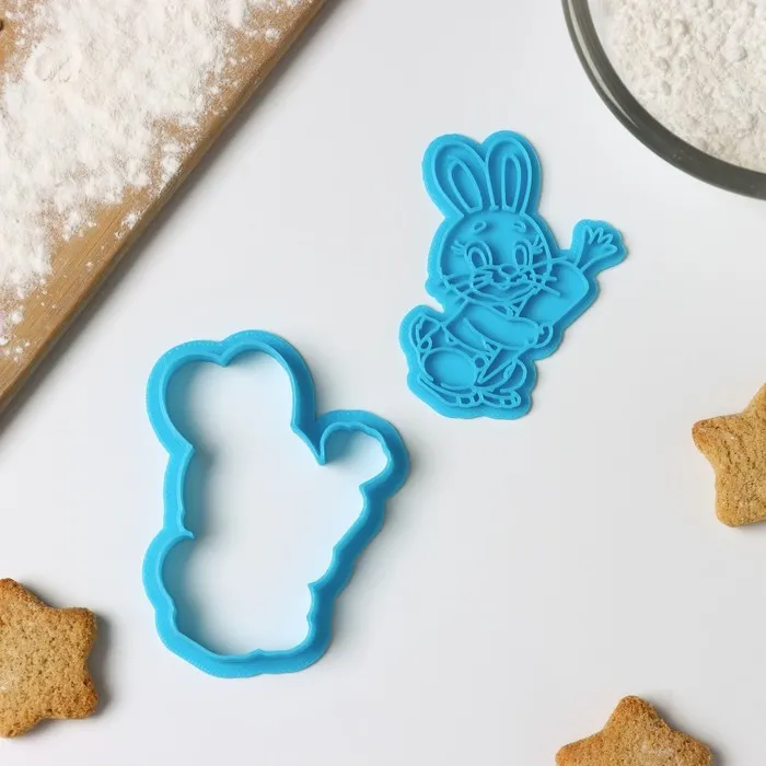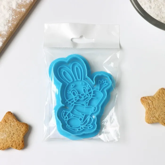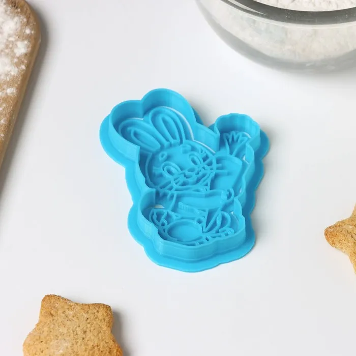 Форма для печенья «Зайчик с морковкой», вырубка, штамп, цвет голубой — Характеристики