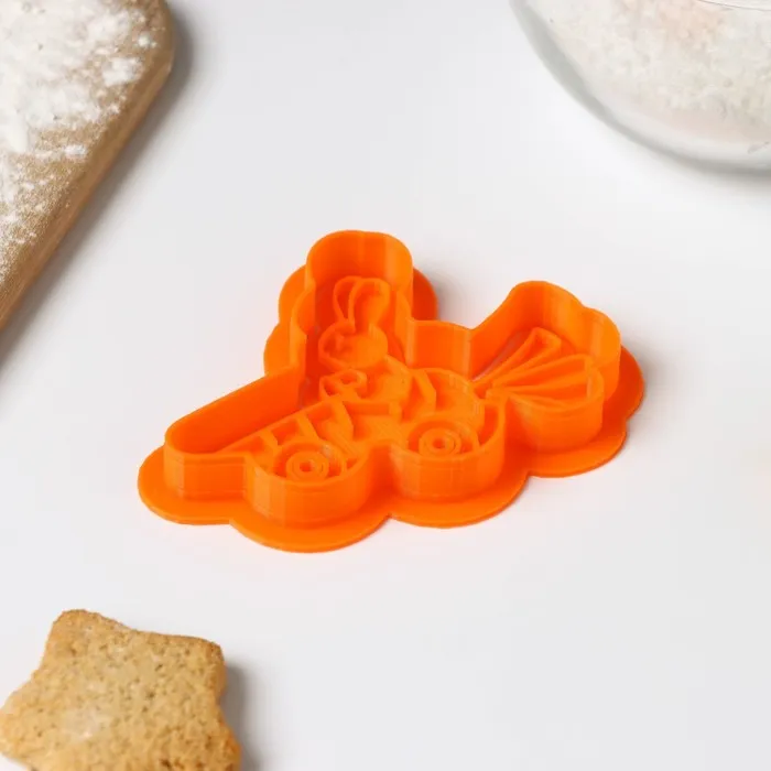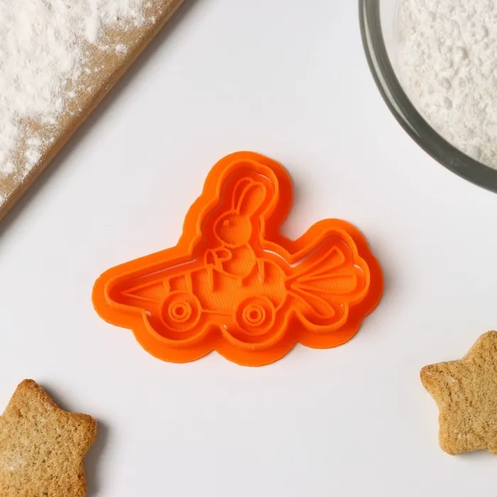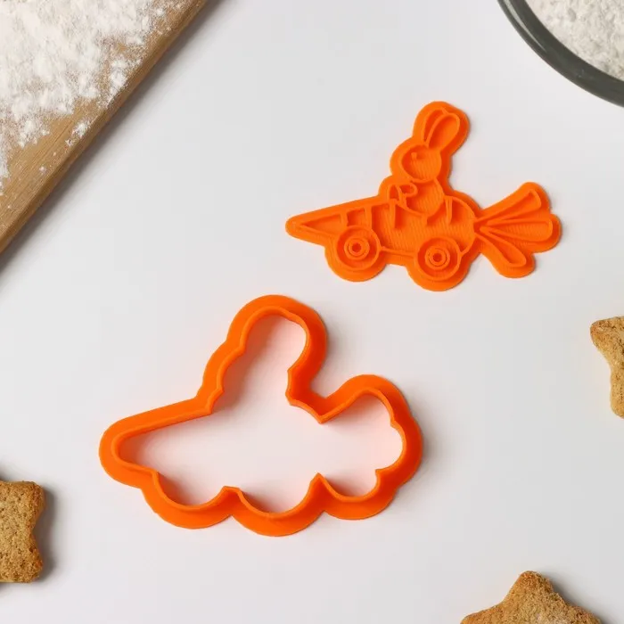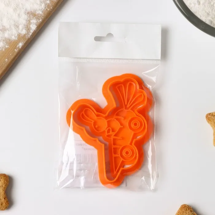 Форма для печенья «Зайка едет на морковке», вырубка, штамп, цвет оранжевый — Характеристики