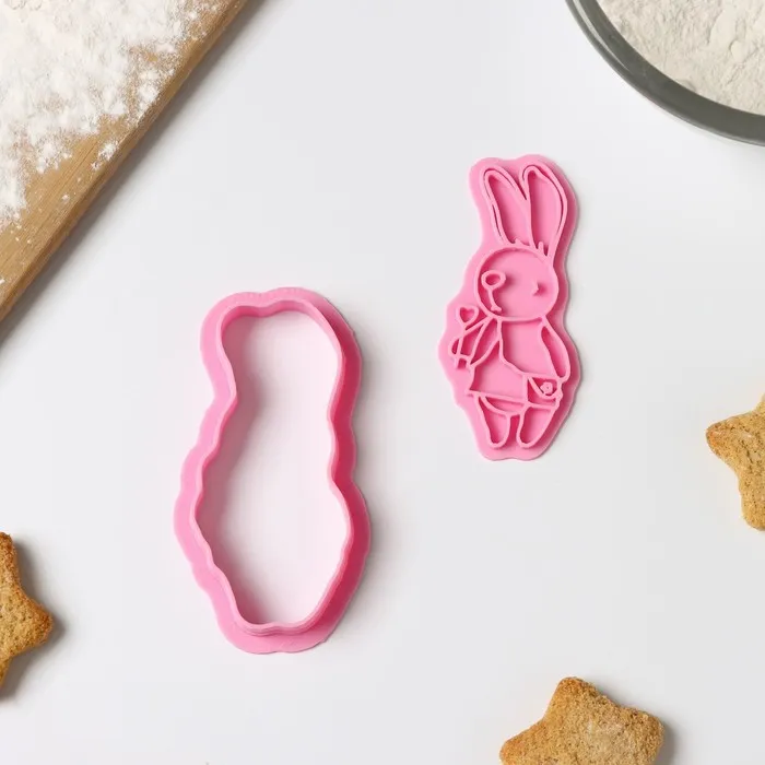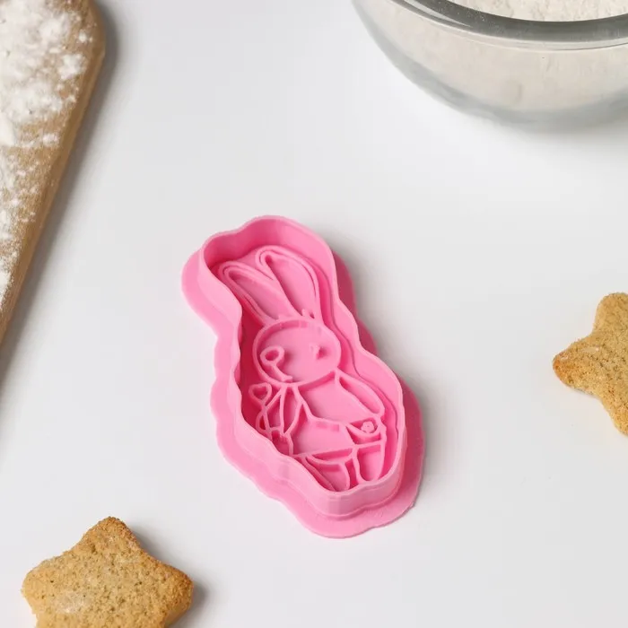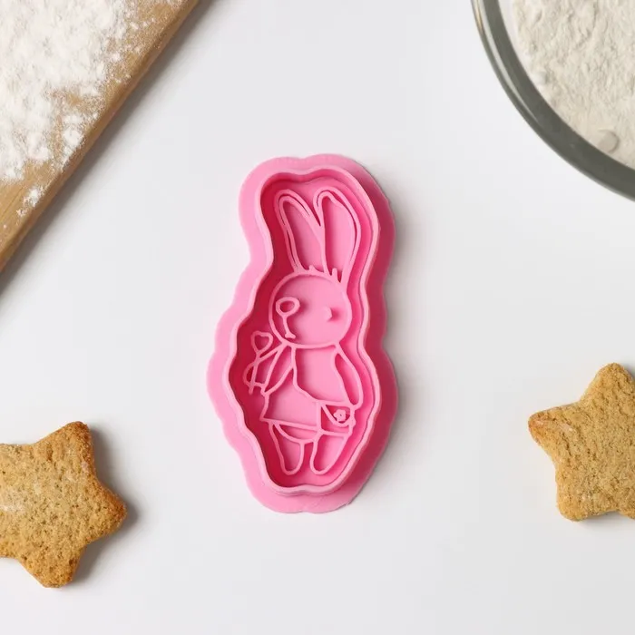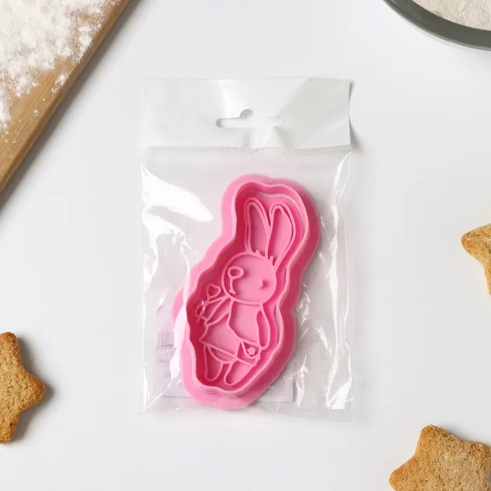 Форма для печенья «Зайка с леденцом», вырубка, штамп, цвет розовый — Характеристики