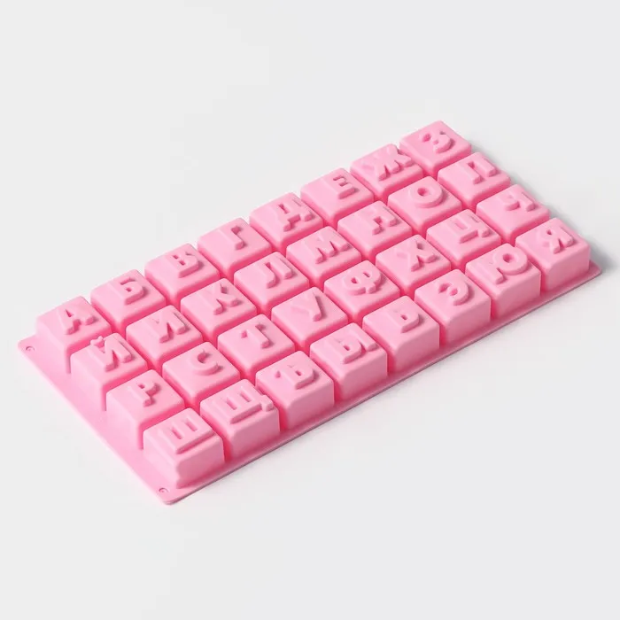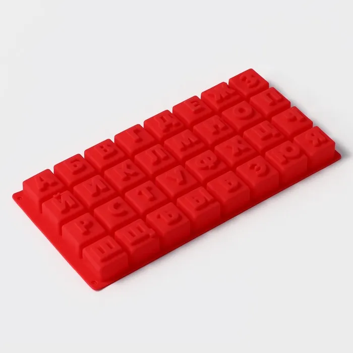 Форма для шоколада Доляна ««Алфавит для бенто-тортов», силикон, 35×18 см, 32 ячейки (3.7×3.7×3 см), МИКС — Характеристики