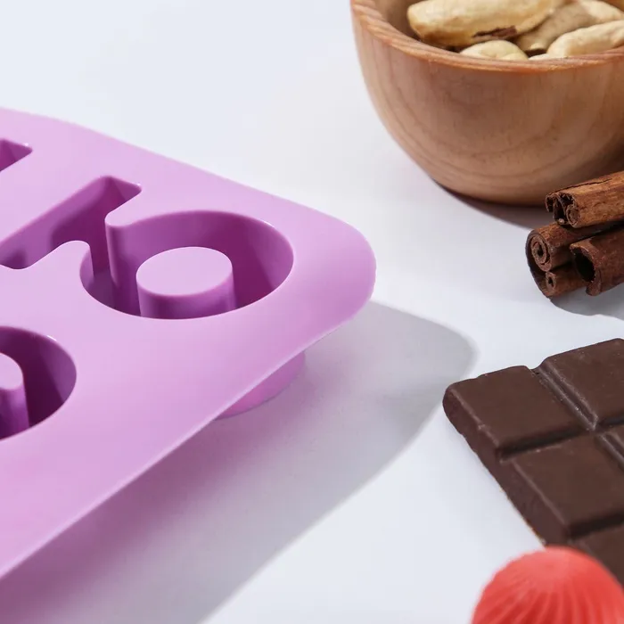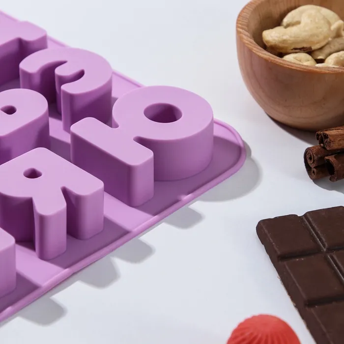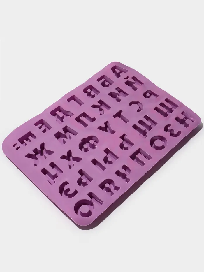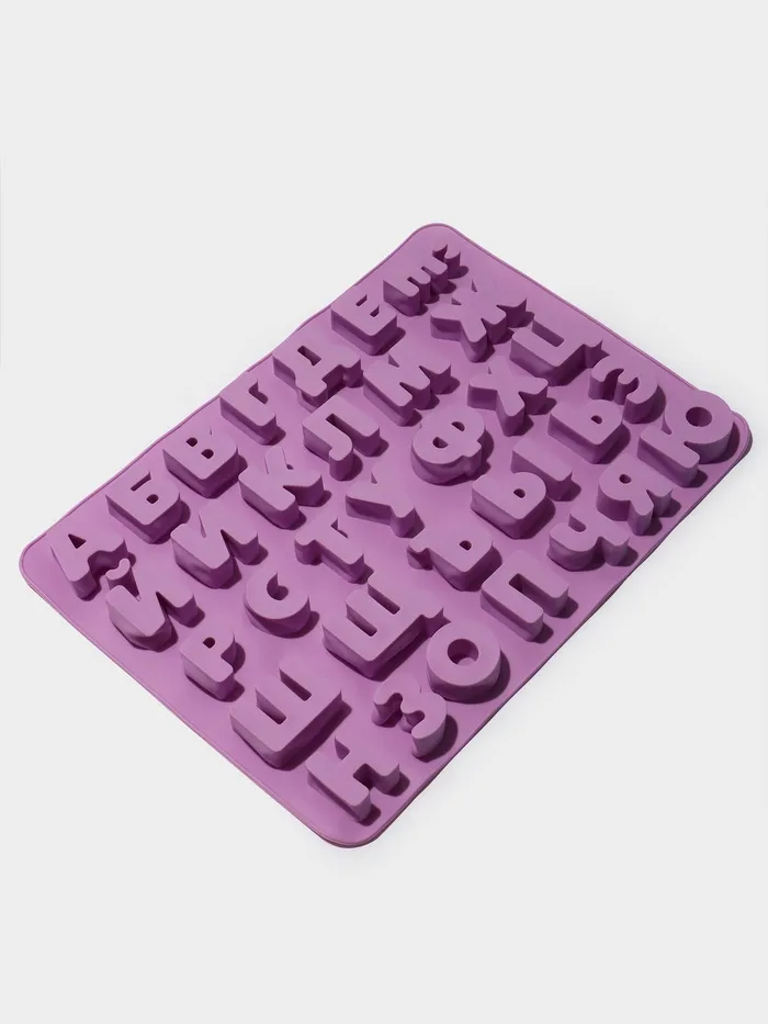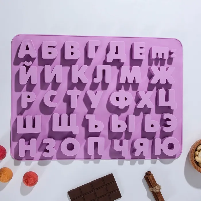 Форма для шоколада Доляна «Алфавит для бенто-тортов», силикон, 36.6×26.6×2 см, 33 ячейки (3.5×3 см), сиреневая — Характеристики