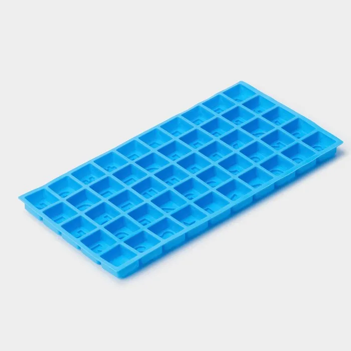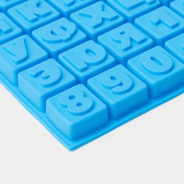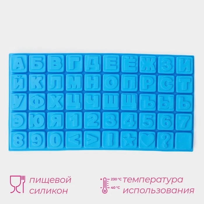 Форма для шоколада Доляна «Алфавит для бенто-тортов», силикон, 50 ячеек, 35×18.5×2 см, синяя — Характеристики