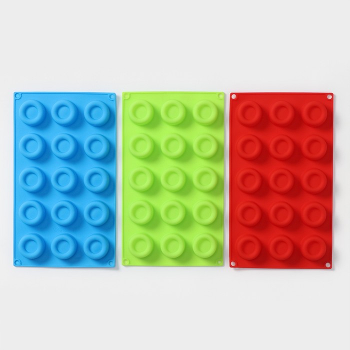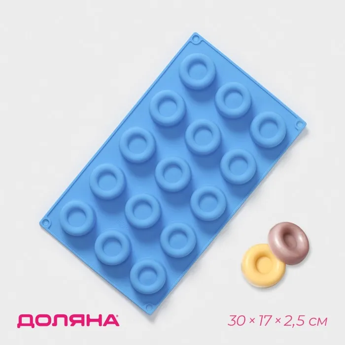 Форма для шоколада Доляна «Лолли.Круг», силикон, 30×17×2,5 см, 15 ячеек, цвет МИКС — Характеристики